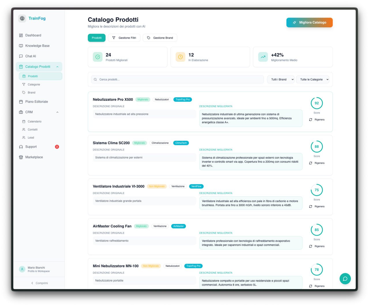 Strumenti come Trainfog supportano la gestione di cataloghi complessi, contenuti e traduzioni, e includono anche chat AI e gestione ticket, garantendo risposte immediate. In questo modo il cliente si sente ascoltato, seguito e supportato, e il tono della comunicazione può essere configurato in linea con il brand, offrendo un’esperienza coerente e professionale in ogni interazione.